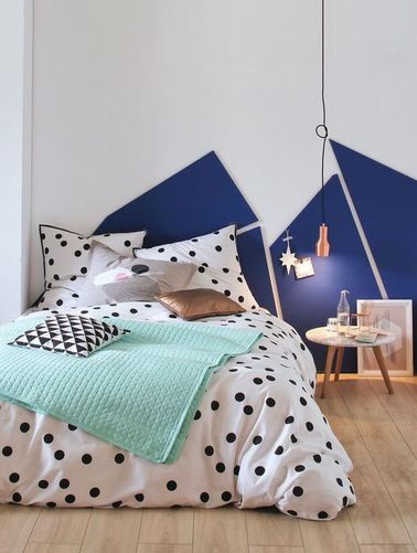 Chambre Peinture Tete De Lit. Deux luminaires suspendus de la maison pernoise de chaque. La peinture permet de jouer sur le mur avec les couleurs, les formes et les textures afin de former un décor pour le lit.